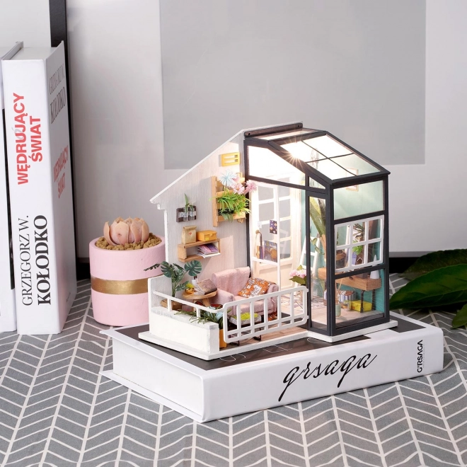 Setul Robotime-Rolife DGM05 este o casă frumoasă cu balcon. Imaginați-vă că stați pe o canapea confortabilă sub soarele cald și citiți o carte cu o ceașcă de cafea. Cât de vie este această scenă!