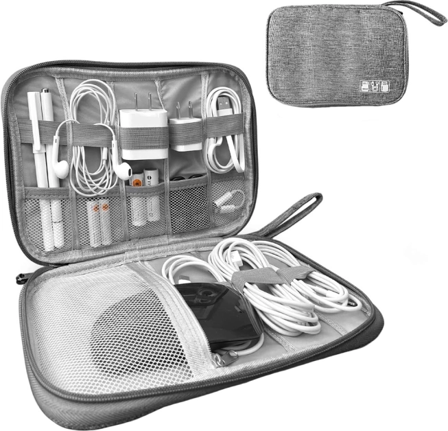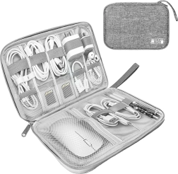 Păstrează accesoriile ordonate într-un singur loc datorită acestui organizator de călătorie compact. Oferă mai multe compartimente, benzi elastice pentru cabluri și buzunare din plasă pentru mărunțișuri. Datorită designului ușor, materialului rezistent la uzură și fermoarului sigur, este ideal pentru călătorii, birou și școală.