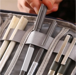 Acest organizator practic pentru electronice te ajută să ții în ordine cablurile, încărcătoarele, power bank-urile și adaptoarele. Sistemul intern de benzi elastice și buzunare din plasă păstrează totul bine fixat și organizat. Dimensiunile compacte de 24 × 17 × 3 cm asigură că încape în rucsac, geantă sau bagajul de mână.