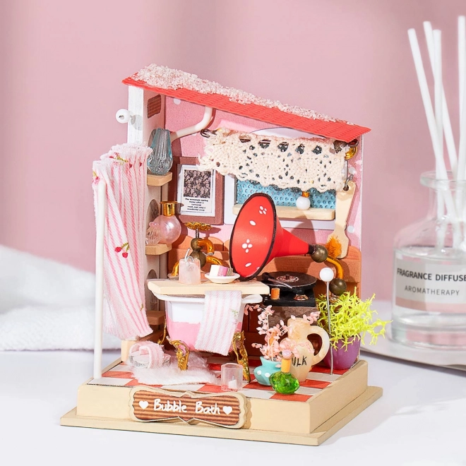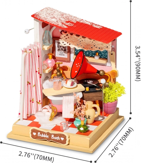 Intrați în lumea miniaturilor cu Miniatură căsuță baie Bubble Bath de la RoboTime. Acest set creativ oferă ore de distracție în asamblare și pictură. După finalizare, o puteți folosi ca ornament frumos în camera dvs.