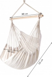Datorită construcției durabile și suportului din lemn rezistent, scaunul suportă o încărcătură de până la 150 kg, iar frânghiile speciale, fixate dens, garantează siguranța și confortul în utilizare.