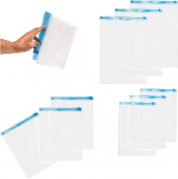 Aveți nevoie să economisiți spațiu în dulap? Rolele noastre de vid pentru îmbrăcăminte sunt aici să vă ajute! Acest set conține nouă role în trei dimensiuni diferite (35x50 cm, 40x50 cm, 50x70 cm), care protejează perfect lucrurile dvs. de praf, umiditate și mirosuri neplăcute. Sunt ideale nu doar pentru hainele sezoniere, ci și pentru prosoape, lenjerie de pat, jucării de pluș și alte produse textile.