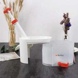 Sâmburii extrași cad într-un rezervor special, care poate fi golit cu ușurință după fiecare utilizare. Fructele alunecă automat în recipientul pregătit. Acest dispozitiv comod și eficient este apreciat atât de începători, cât și de conservatori experimentați.