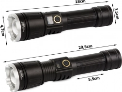 Descoperiți avantajele acestei lanterne de înaltă calitate, fabricată din aluminiu de aviație și oferind suprafață antiderapantă. Dispune de funcție de powerbank, ceea ce înseamnă că poate încărca dispozitivele mobile în caz de urgență. Cu un zoom puternic care permite un fascicul îngust cu o rază de până la 1000 de metri, este un instrument ideal pentru iluminarea spațiilor mari.
