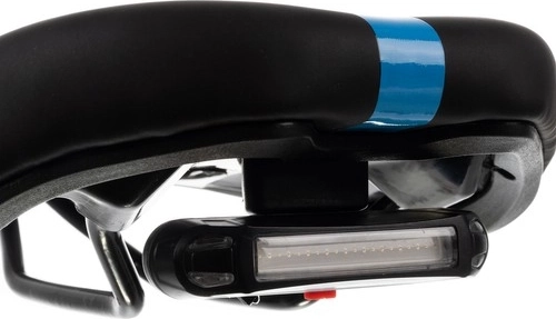 Lumină integrată: Șaua este dotată cu o lumină spate cu cinci moduri de iluminare, în culorile roșu și albastru. Lumina se încarcă prin USB și poate fi ușor demontată pentru încărcare fără a îndepărta întreaga șa.