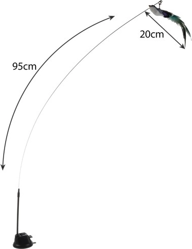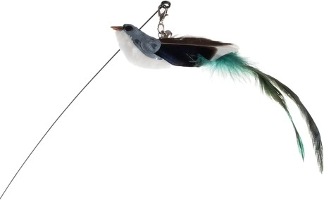 Bățul elastic lung, cu elemente atrăgătoare la capăt, captează atenția pisicii și o încurajează să sară și să prindă. Păsărica decorată cu pene lungi și un clopoțel delicat îi sporește atractivitatea.