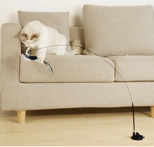 Jucăria pentru pisici cu ventuză și păsărică oferă pisicilor ocazia de a se implica într-un joc palpitant plin de urmărire și prindere. Această activitate dinamică este posibilă datorită bățului lung și elastic cu pene și clopoțel, care atrag atenția și încurajează săritul și vânarea.