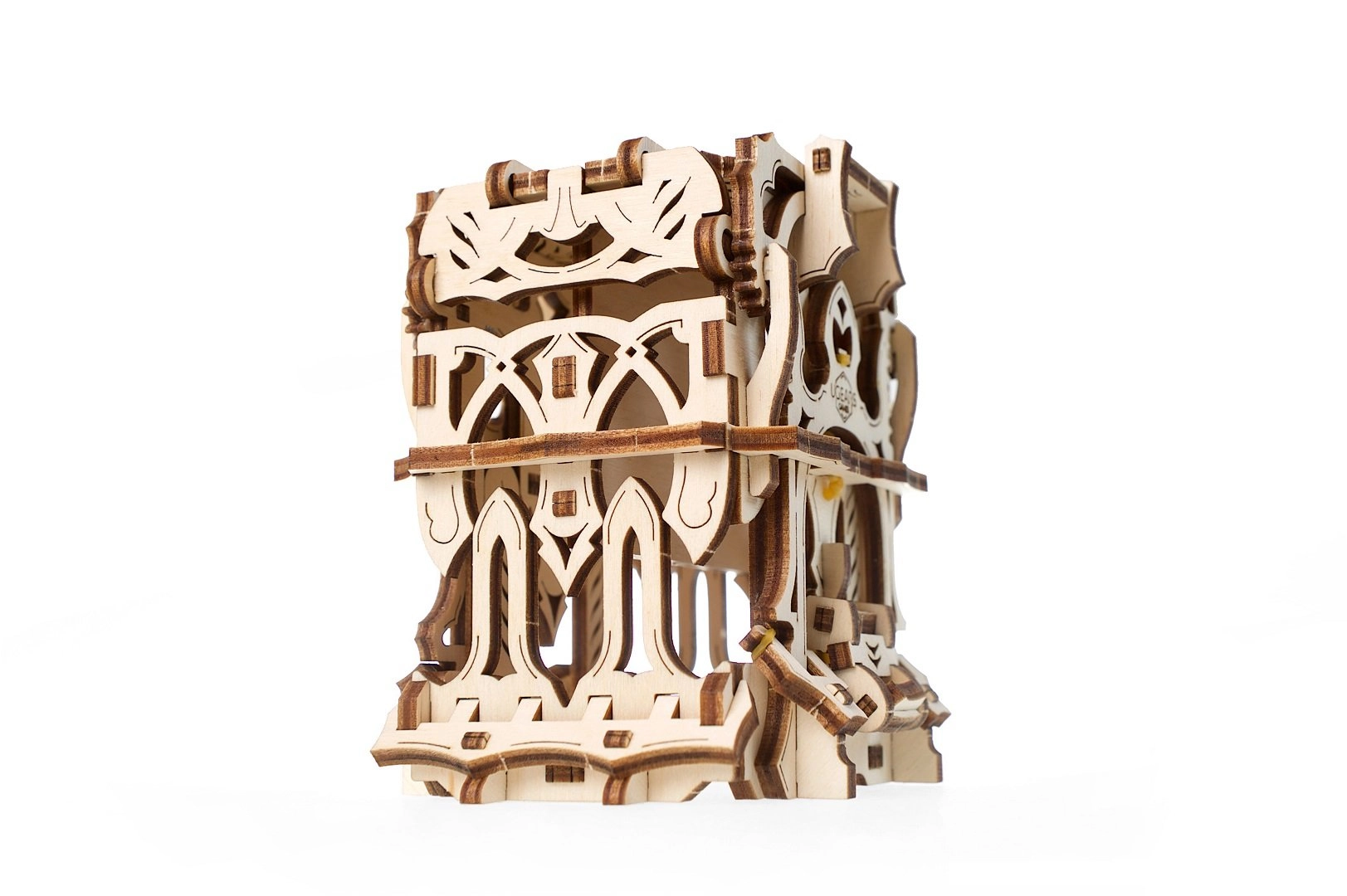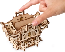 Modelul este realizat din placaj de lemn de calitate, cu decupaje ornamentale, și este destinat asamblării de către utilizator. Datorită nivelului scăzut de dificultate, îl poți finaliza în aproximativ 1 oră. Include instrucțiuni detaliate; după finalizare poți decora cutia cu acuarele.