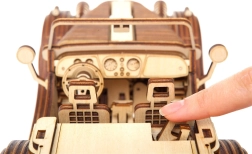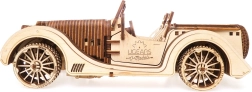 Un roadster stilat, inspirat de vehiculele de epocă, oferă o experiență unică atât la asamblare, cât și la utilizare. Modelul UGEARS este alcătuit din piese decupate cu laser care se potrivesc exact, iar după asamblare oferă o funcționare lină datorită angrenajelor inteligente și propulsiei cu elastic. Totul se realizează fără pic de lipici – doar cu ajutorul unui ghid ilustrat.