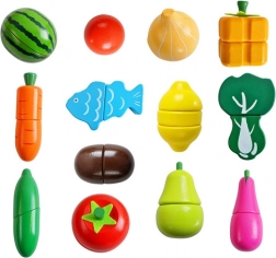 Descoperiți setul din lemn care transformă fiecare joacă de gătit într-o aventură distractivă și educativă. Fructele, legumele și peștele realizate realist sunt împărțite în părți și conectate cu benzi cu arici, astfel încât copiii le pot tăia în siguranță și le pot reuni. Culorile vii atrag atenția și îi motivează să exploreze gusturi și forme.