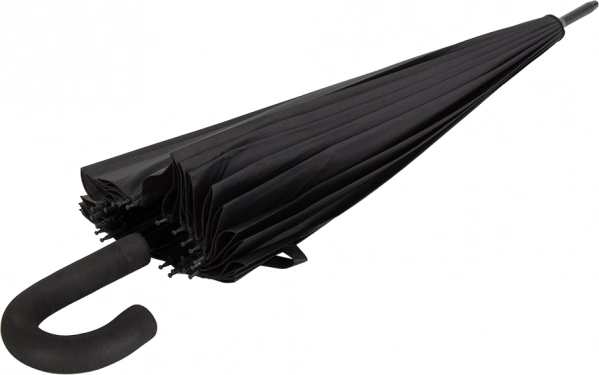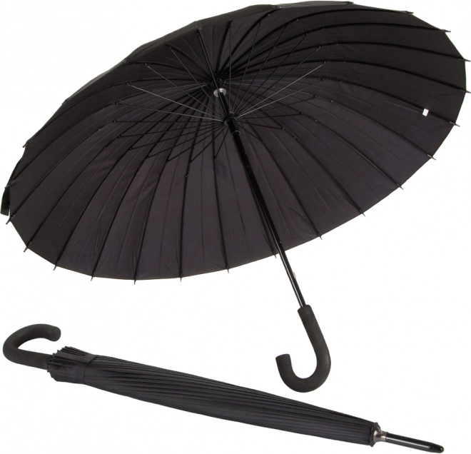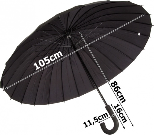 Căutați o umbrelă care să facă față ploii abundente și rafalelor de vânt, păstrând în același timp un aspect elegant? Această umbrelă mare, neagră, combină execuție de calitate, construcție durabilă și design atemporal. Datorită celor 24 de spițe elastice din fibre de policarbonat, este stabilă și fiabilă.