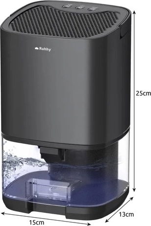 Dezumidificatorul de aer RUHHY este soluția ideală pentru a menține umiditatea la un nivel optim în locuința ta. Acest dezumidificator eficient colectează și elimină umiditatea acumulată din aer, fără a necesita elemente sau substanțe chimice suplimentare.