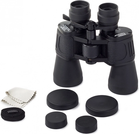 Pentru observare prelungită, binoclul poate fi atașat pe un trepied folosind un șurub integrat. Binoclul vine cu capace de protecție pentru oculare și obiective, o lavetă de curățare și un toc robust cu curea de umăr pentru transport ușor.