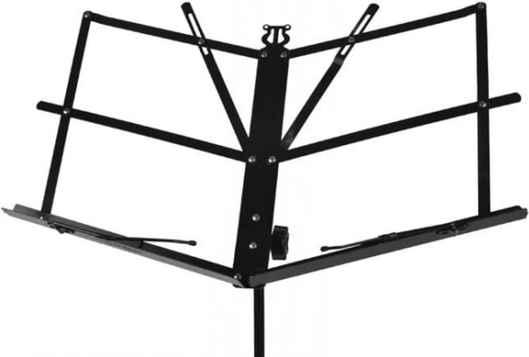 Acest suport de partituri vopsit, din metal, este echipat cu o bază cu trei picioare și înălțime reglabilă, ceea ce permite utilizarea sa în picioare sau așezat. Suportul poate fi chiar așezat pe o masă când este setat la înălțimea minimă. Suprafața înclinabilă se adaptează ușor nevoilor dvs., în timp ce unghiul de înclinare ajustabil previne închiderea partiturilor. Ideal pentru profesioniști și amatori.