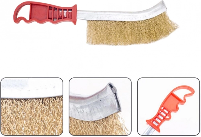 Peria din sârmă de alamă este un ajutor ideal pentru uz casnic și profesional, concepută pentru îndepărtarea murdăriei greu accesibile, a ruginii și a bavurilor. Această perie are un mâner ergonomic din plastic, cu orificiu, care ușurează manipularea și previne alunecarea din mână. Este fabricată din