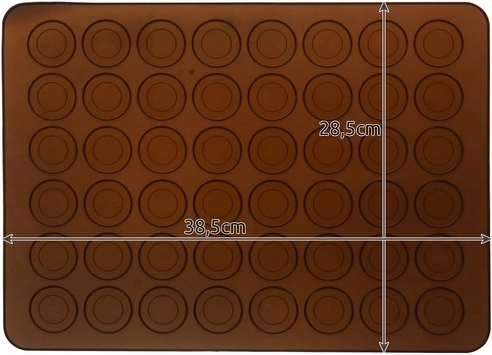 Covorașul oferă posibilitatea de a coace 48 de biscuiți concomitent, un număr optim pentru o astfel de suprafață. Dispune de două mărimi de cercuri, 22 mm și 35 mm, astfel poți pregăti macarons mici și mari.