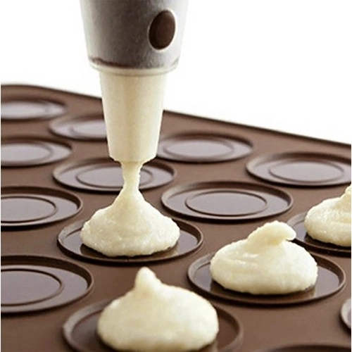 Acest covoraș de silicon este un ajutor ideal pentru coacerea macarons și biscuiți. Este fabricat dintr-un material durabil, rezistent la temperaturi înalte și scăzute și este non-alergenic. Datorită suprafeței antiderapante, nu se va mișca în timpul plasării aluatului și este ușor de depozitat. După utilizare, îl poți clăti simplu cu apă caldă sau îl poți pune în mașina de spălat vase.