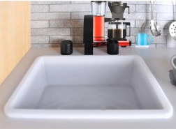 Roți rotative ale ochiurilor cu clic caracteristic, uși care se deschid și detalii interactive ce imită o bucătărie reală.