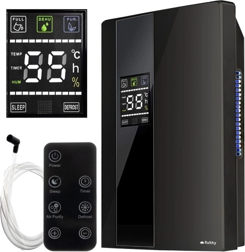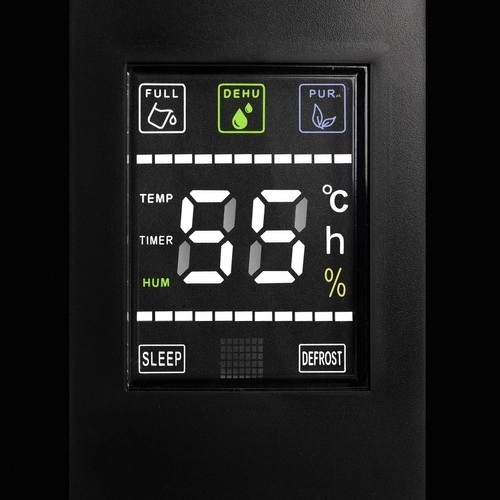 - Specificații – Higrometru: da; Higrostat: da; Termometru: da; Display LCD iluminat: da; Timer: 1-24h; Funcția SLEEP: da; Funcția DEFROST: da; Telecomandă: da; Capacitate de dezumidificare: 650ml pe zi; Dimensiunea maximă a camerei: 30m2; Nivelul de zgomot: 40db; Putere maximă: 90W; Dimensiuni: 37,5 x 25 x 14 cm; Greutate: 1,75kg.
