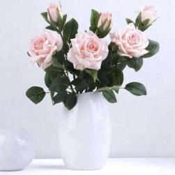 Frunzele artificiale de trandafir sunt o alegere excelentă pentru cei care doresc un efect natural fără udare și fără căderea frunzelor. Fiecare rămurică are un frunziș bogat cu nervuri pronunțate și arată foarte realist în buchete, coroane și chiar singure în vază.