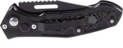 Acest cuțit tactic pliabil este partenerul ideal pentru camping, drumeții, tabere și purtare zilnică. Lama din oțel asigură o tăiere fiabilă, în timp ce siguranța lamei oferă protecție la transport și utilizare. Mânerul decorat nu doar arată excelent, ci se și potrivește foarte bine în mână.