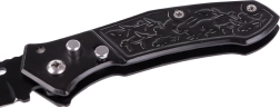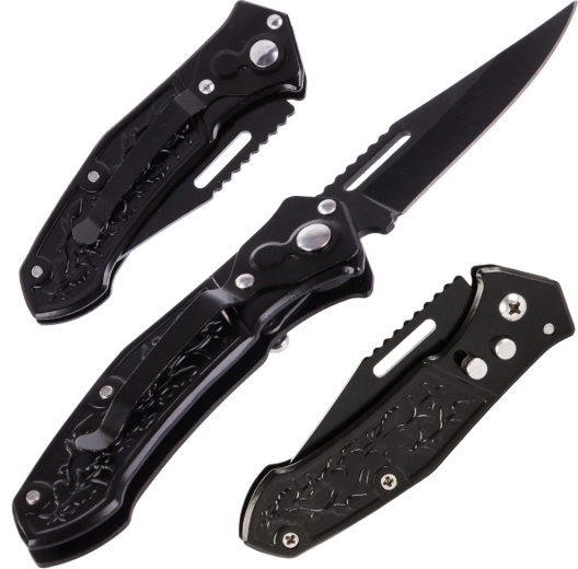 Un cuțit pliabil elegant și practic pentru utilizare zilnică și în natură. Oferă o lamă din oțel, siguranță împotriva deschiderii accidentale și un mâner ergonomic decorat pentru o prindere sigură. Datorită agrafei de buzunar, îl poți prinde ușor de curea sau rucsac și îl ai mereu la îndemână.