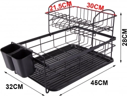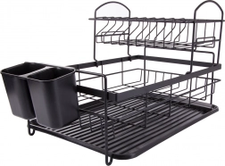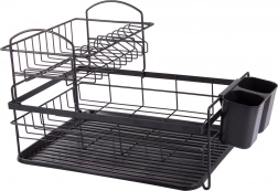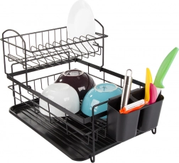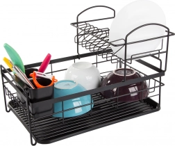 Construcția pe două niveluri a suportului pentru vase maximizează spațiul de uscare. Nivelul superior poate găzdui până la 11 farfurii, în timp ce partea inferioară oferă suficient loc pentru cești și boluri. În plus, este dotat cu un suport detașabil pentru tacâmuri, care poate fi mutat cu ușurință în funcție de nevoile tale.