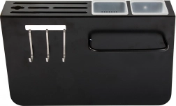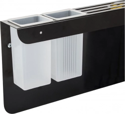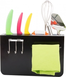Trei cârlige și două containere pentru organizarea facilă a cuțitelor și a ustensilelor de bucătărie.