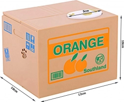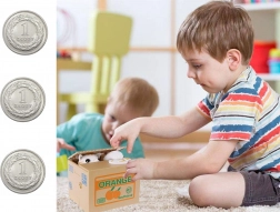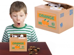 Pușculița este stilizată ca o ladă cu fructe, care nu doar că motivează economisirile, dar este și plăcută la privit.