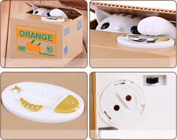 Pur și simplu activați-o trecând comutatorul pe ON și observați cum capacul cutiei se deschide și pisica cu un miaunet drăguț ascunde banii în interior. Iar când vine timpul să extrageți economiile, pușculița se deschide ușor.