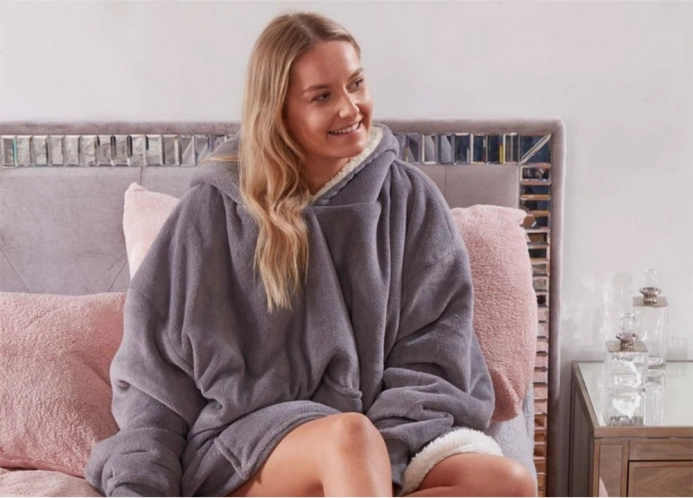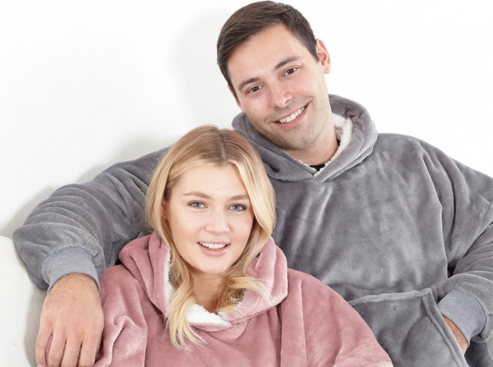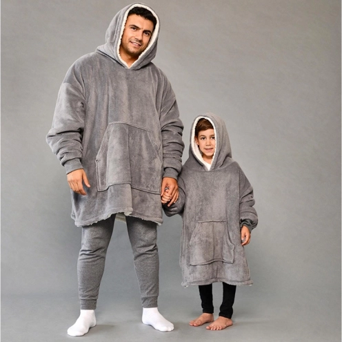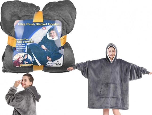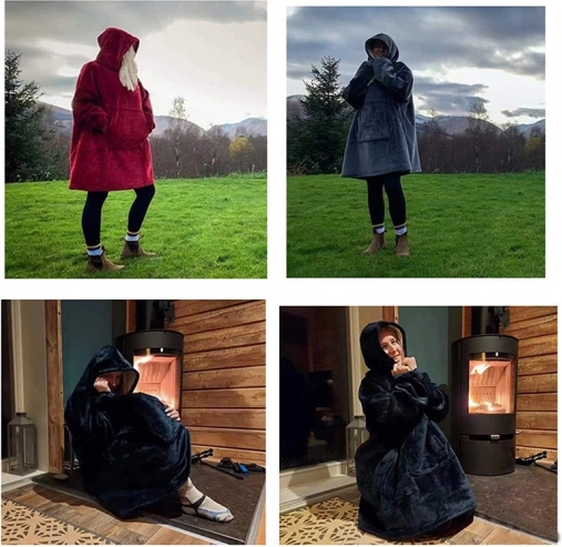 Bucură-te de confort maxim cu această hoodie-pătură oversize călduroasă. Ideală pentru serile reci acasă, această hoodie-pătură oferă căldură și libertate de mișcare datorită mânecilor largi.