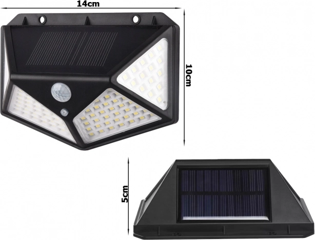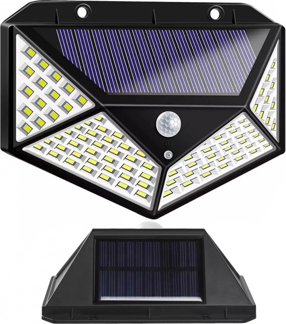 Această lampă solară este proiectată pentru eficiență maximă și siguranța iluminatului tău exterior. Cu 100 de LED-uri oferă un iluminat puternic care este activat de mișcare, asigurând astfel siguranță și economie de energie.