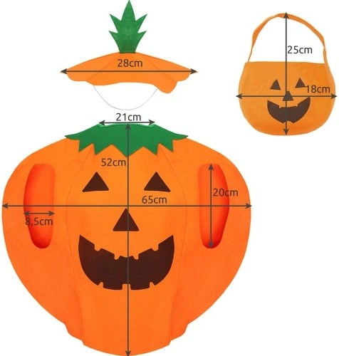 Vă prezentăm costumul perfect de dovleac pentru copii de Halloween. Acest set este versatil datorită dimensiunilor sale și se potrivește atât copiilor mai mici, cât și celor mai mari. Este ideal pentru evenimente festive și oferă confort oricărui copil.