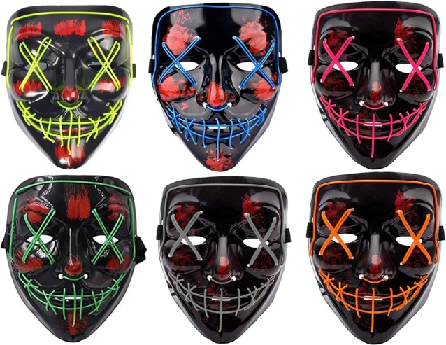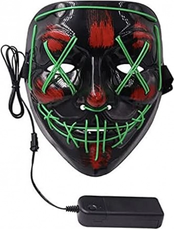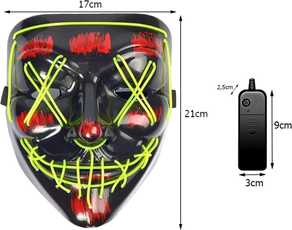Impresionați cu un efect neon puternic. Masca din plastic ușoară și rezistentă, cu căptușeală moale și bandă elastică, se potrivește confortabil atât adulților, cât și copiilor. Datorită deschiderilor bine conturate pentru ochi și gură, vizibilitatea și comunicarea rămân fără probleme.