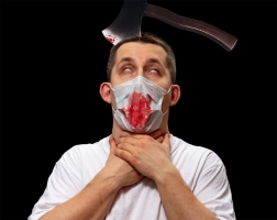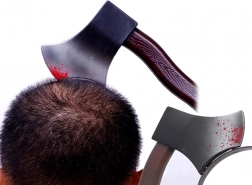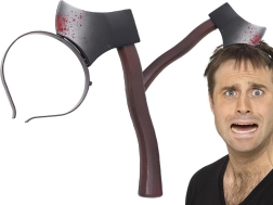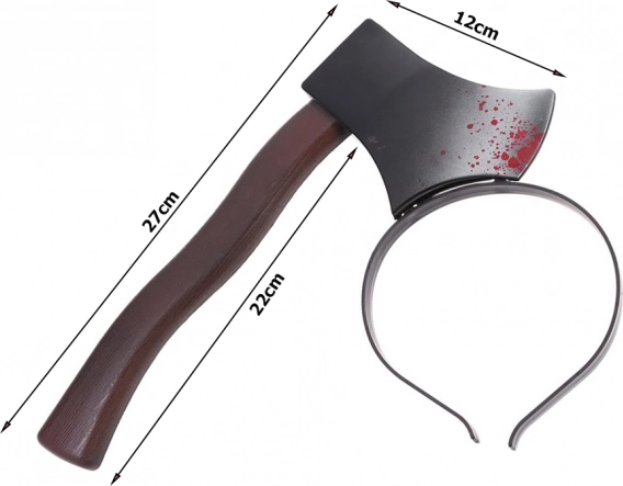 Cele două capete ale „toporului” atașate de bentiță creează un efect surprinzător de realist, fără pic de sânge. Ideal pentru un look horror care atrage atenția.