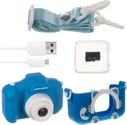 Pachetul include card de memorie 32GB, astfel încât copiii pot începe să creeze imediat. Nu lipsesc camera pentru selfie, numeroase rame și filtre amuzante (alb-negru, sepia, negativ), fotografiere în rafală și oprire automată pentru economisirea energiei. Husa de protecție tip pisică din silicon și cureaua asigură purtare în siguranță.