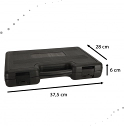 Totul este depozitat într-o geantă din plastic rezistentă cu marcaje clare ale pozițiilor, astfel încât aveți mereu la îndemână accesoriul potrivit. Setul este ideal pentru profesioniști și pasionați de bricolaj care caută ordine, mobilitate și versatilitate într-o singură soluție.