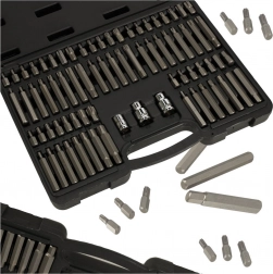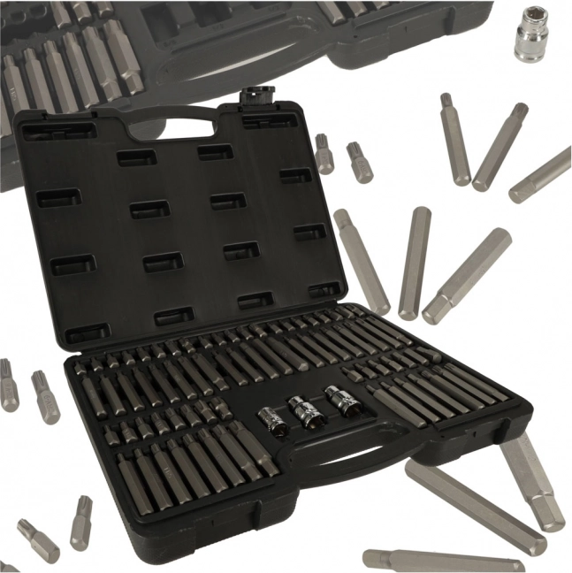 Cu acest set complet de biți obțineți tot ce aveți nevoie pentru înșurubarea și desfăcerea diferitelor tipuri de îmbinări în domeniul auto, mecanic și casnic. Biții din oțel crom-vanadiu CrV oferă durată de viață ridicată, potrivire precisă și transmitere fiabilă a forței. În set găsiți biți scurți și lungi într-o gamă largă de dimensiuni și, de asemenea, adaptoare 1/2" și 3/8" pentru compatibilitate maximă cu sculele.