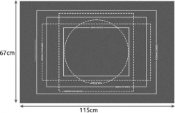 Covorul include câmpuri imprimate pentru șase dimensiuni diferite de puzzle, facilitând asamblarea fiecărei dimensiuni de piese.