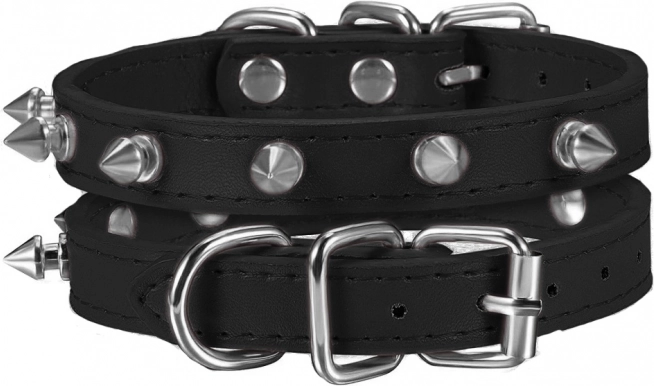 Oferă-i companionului tău un aspect îndrăzneț, având grijă în același timp de confortul lui. Zgarda din piele ecologică de calitate, cu design atent studiat, combină look-ul modern cu funcționalitatea. Forma conică a țintelor are un efect vizual plăcut și, împreună cu catarama robustă, garantează control sigur la lesă.