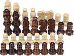 Set complet de piese de șah în nuanțe naturale și maro închis. Perfect pentru antrenarea strategiei și pentru turnee în familie.