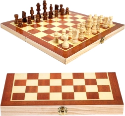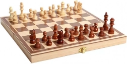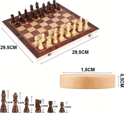 Acest set versatil oferă trei jocuri de masă clasice într-unul: șah pentru gândire strategică, dame cu reguli simple și table (backgammon) pentru joc dinamic și captivant. Tabla de șah pliabilă din lemn servește totodată ca cutie pentru depozitarea în siguranță a pieselor și jetoanelor.