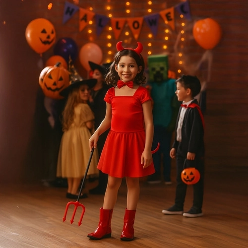 Costumul de drăcușor, într-o nuanță intensă de roșu, transformă instant orice copil sau adult. Datorită materialelor moi și prinderilor elastice, accesoriile se pun ușor și stau confortabil pe tot parcursul distracției. Setul este ideal pentru jocuri de rol acasă, serbări școlare, ședințe foto și petreceri.