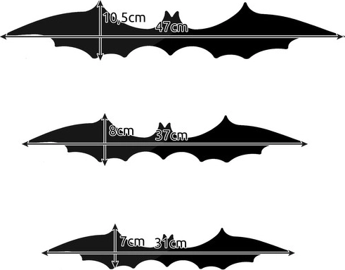Anvergurile aripilor de 47, 37 și 31 cm permit crearea unui roi dinamic de lilieci și evidențierea zonei principale a decorului.