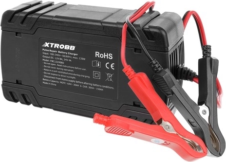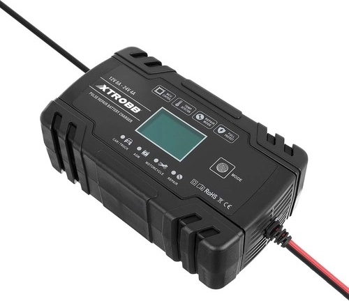 Încărcător de acumulatori XTROBB compact și performant pentru 12 V și 24 V, cu control inteligent prin microprocesor. Oferă detectare automată a tensiunii, mod de reparație prin impulsuri pentru revitalizarea bateriilor afectate sau sulfatate și protecție completă împotriva inversării polarității, scurtcircuitului, supraîncărcării și supraîncălzirii. Datorită panoului tactil și afișajului LCD, operarea este ușoară și clară. Ideal pentru mașini, motociclete, mașini de tuns iarba și bărci.