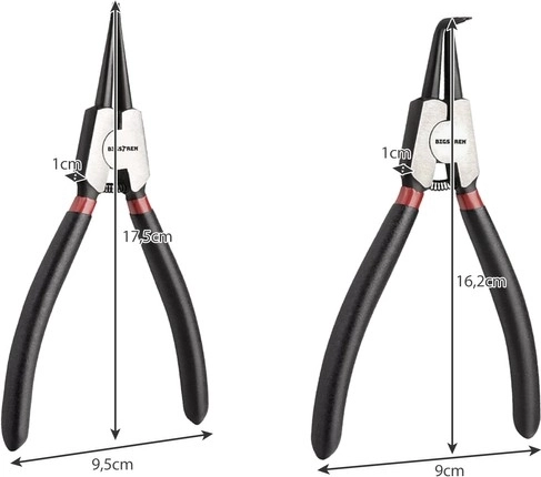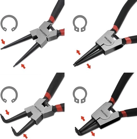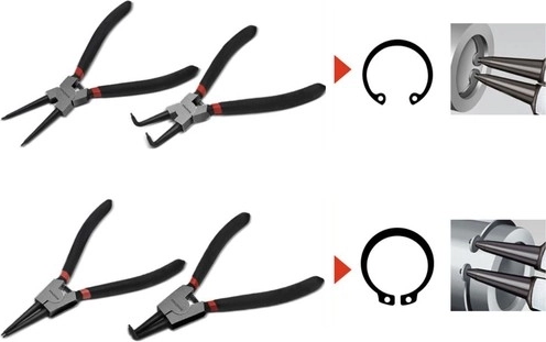 Două unelte drepte și două curbate acoperă majoritatea aplicațiilor cu inele de siguranță interne și externe.