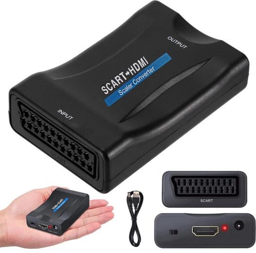 Scalerul integrat transformă semnalul SCART într-o imagine HDMI clară și stabilă, cu rezoluție de până la 1080p – ideal pentru filme, emisiuni TV și jocuri.