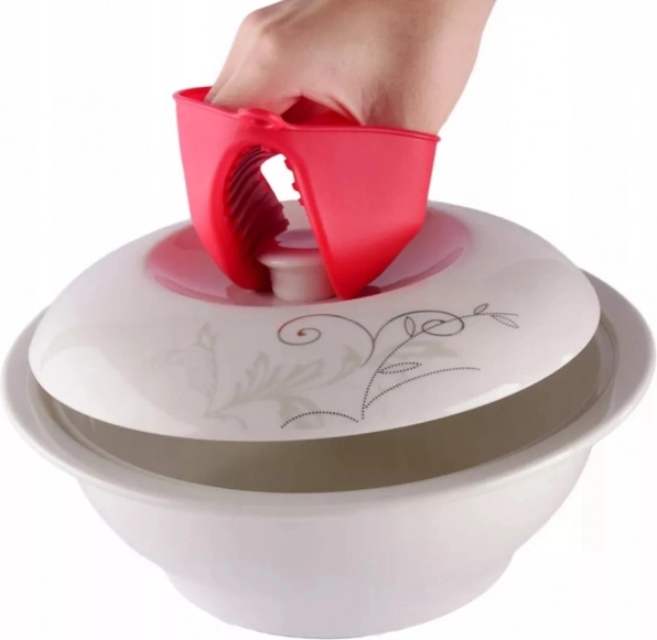 Sunt proiectate cu mici șuruburi din silicon, care asigură stabilitate mai mare la transportul unei tăvi fierbinți, a unei cratițe sau a oricărui alt obiect. Datorită faptului că mănușa este fabricată din silicon, este foarte ușor de menținut curată.