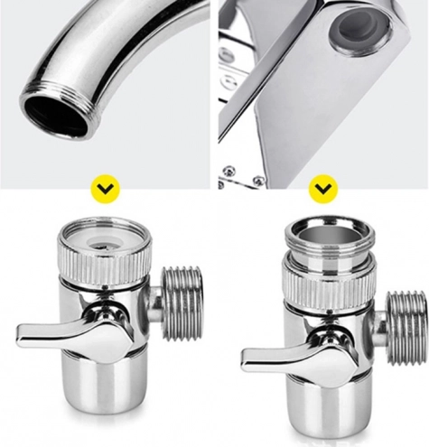 - Instalare simplă prin îndepărtarea perlatorului de pe baterie și conectarea supapei în trei piese.