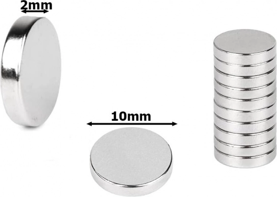 Acești magneți din neodim, din material NdFeB, sunt mult mai puternici decât magneții feritici obișnuiți. Datorită diametrului de 10 mm și înălțimii de 2 mm, sunt cilindri practici care se remarcă prin rezistență excepțională într-un format compact și o durată de viață îndelungată datorită tratamentului anticoroziv.